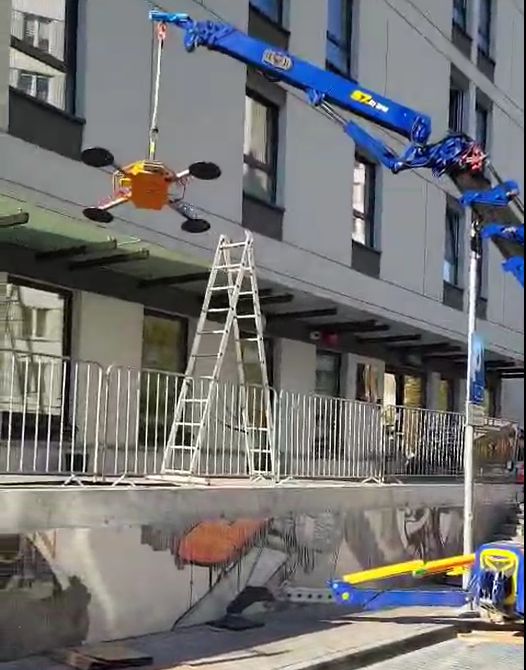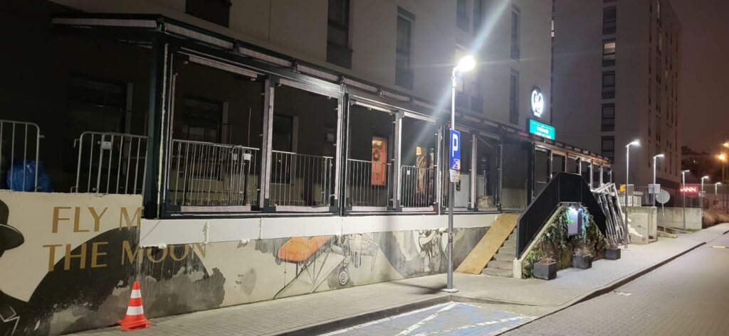 Ciężkie tafle szkła zostały zdjęte przy użyciu specjalistycznych przyssawek, co pozwoliło przeprowadzić prace sprawnie, szybko i przede wszystkim bezpiecznie, mimo obecności gości w restauracji i hotelu.